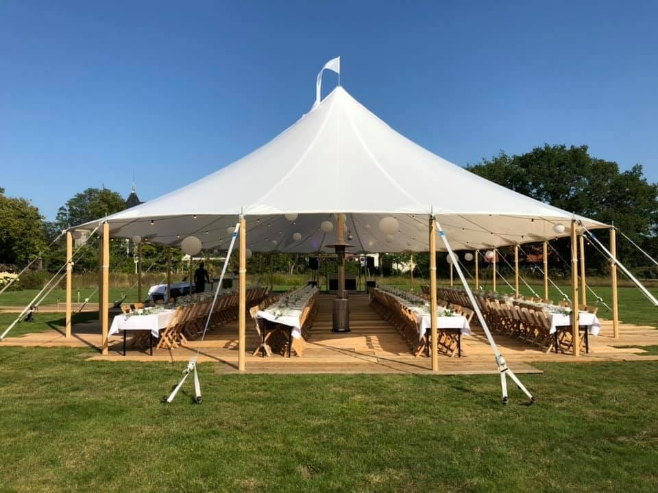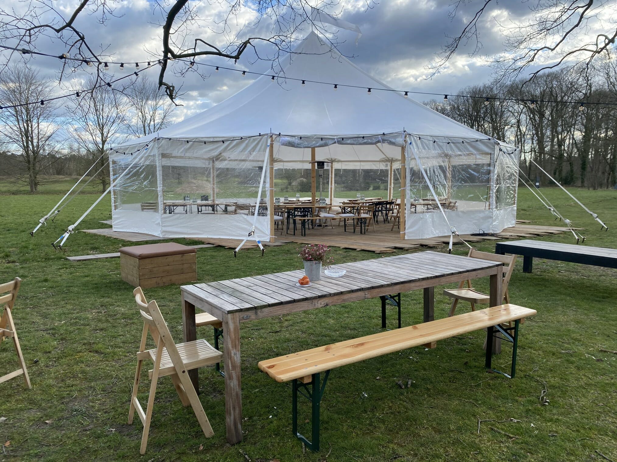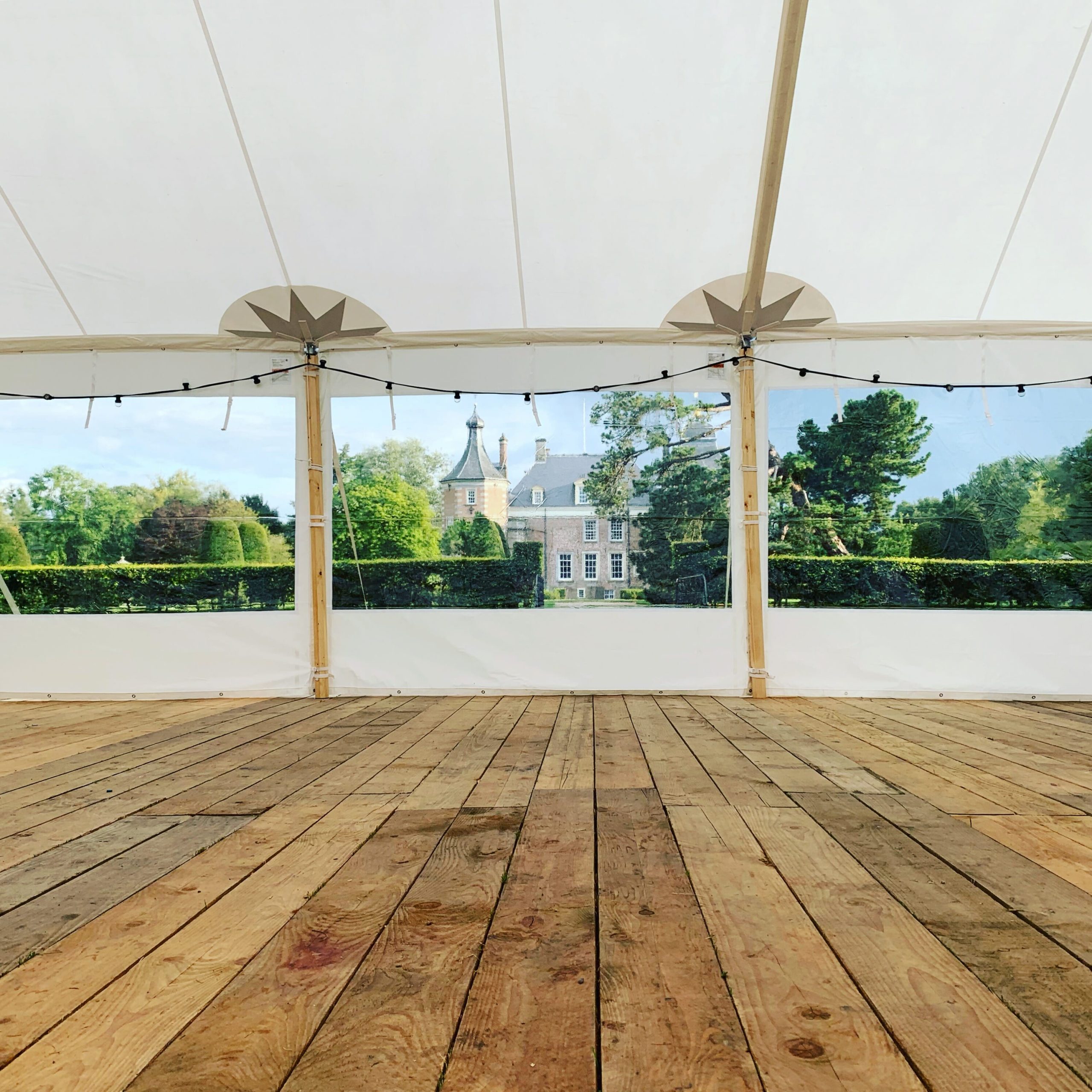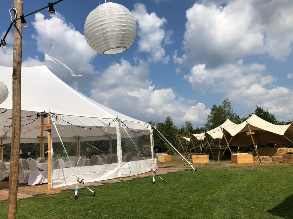 In verschillende maten verkrijgbaar (met 1 tot en met wel 6 middenpalen), en optioneel met transparante of witte zijwanden, afhankelijk van het aantal gasten op je evenement. Hier gaat het om: