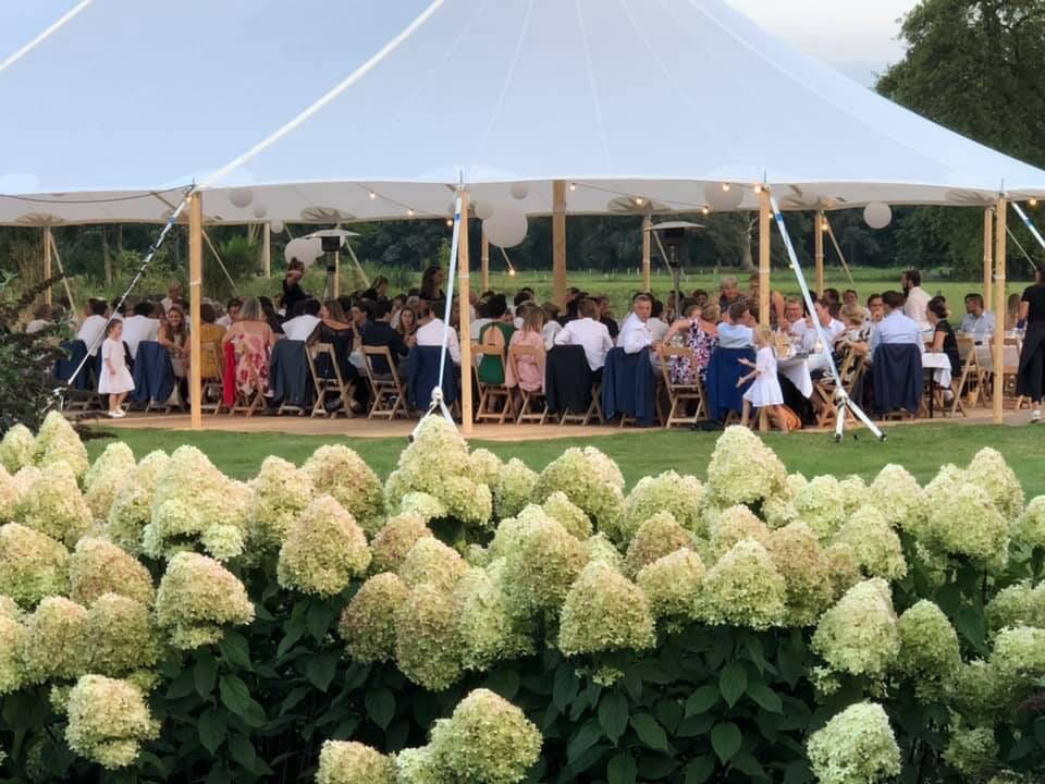 Echt de mooiste van alle tenten! Deze superstijlvolle, ivoorwitte sailcloth tent gloeit je tegemoet. Met verlichting bouw je een sfeervolle avondlocatie, overdag laat de tent voldoende licht door om een prachtige bruiloft of diner te hebben.