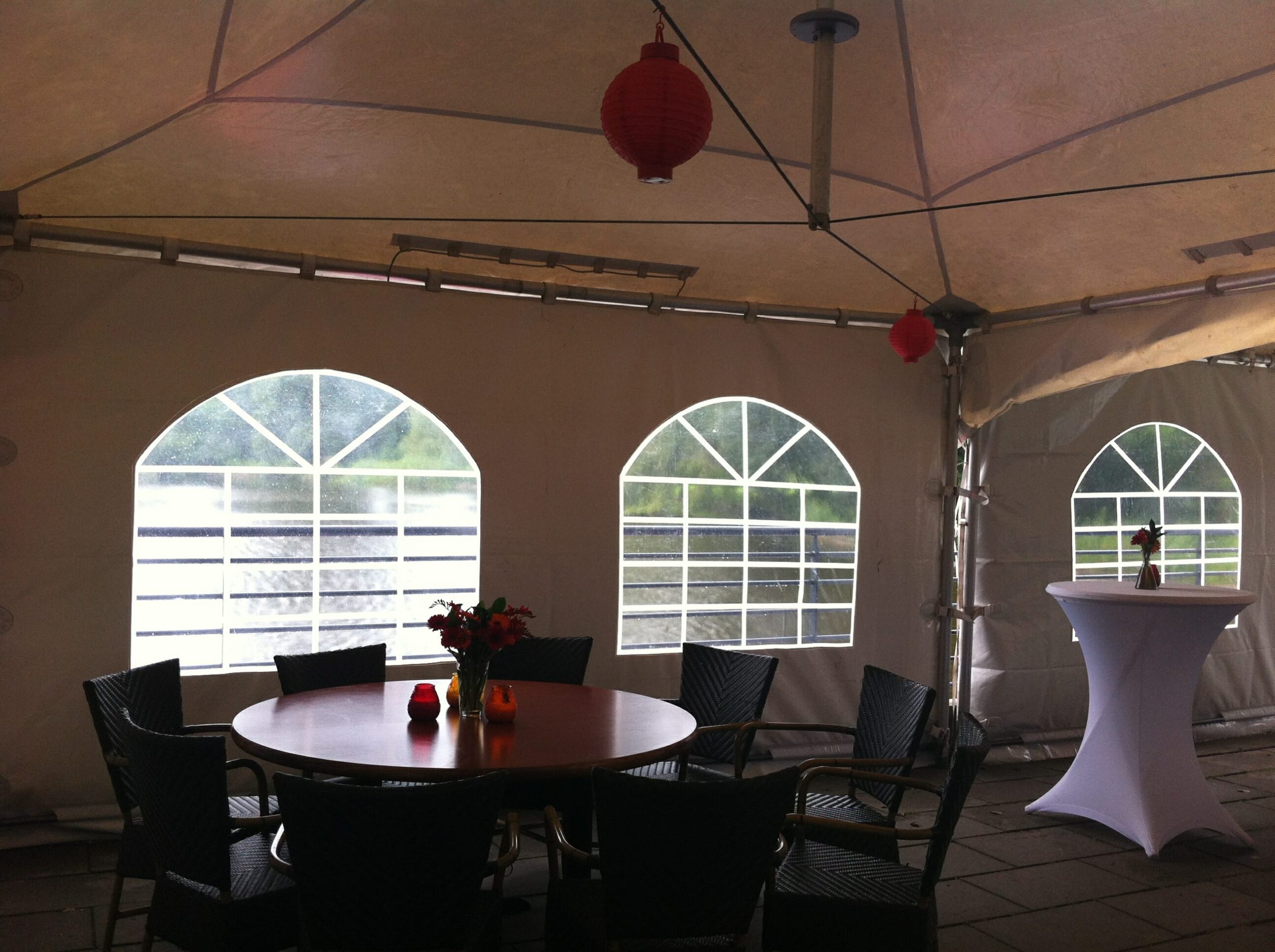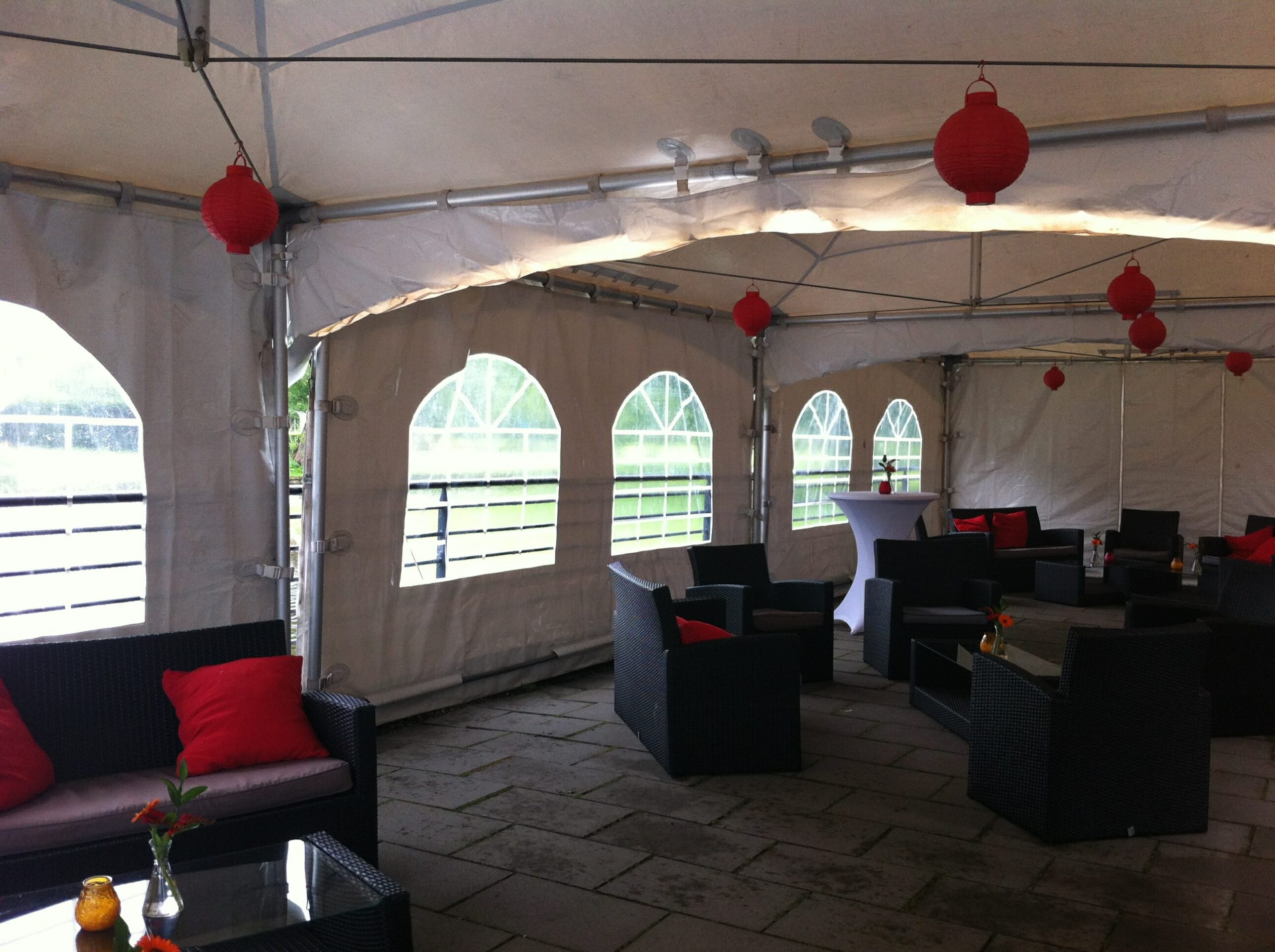 We hebben zijwanden met een ritsdeur erin, een raam, of helemaal dicht.
